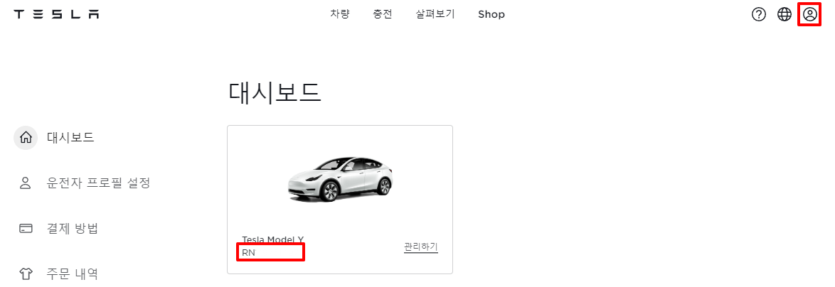 테슬라 홈페이지 우측 '로그인' 하면, '차량주문번호'를 볼 수 있습니다.