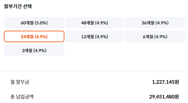 할부기간 3 ~ 60 개월 3 ~ 60 개월