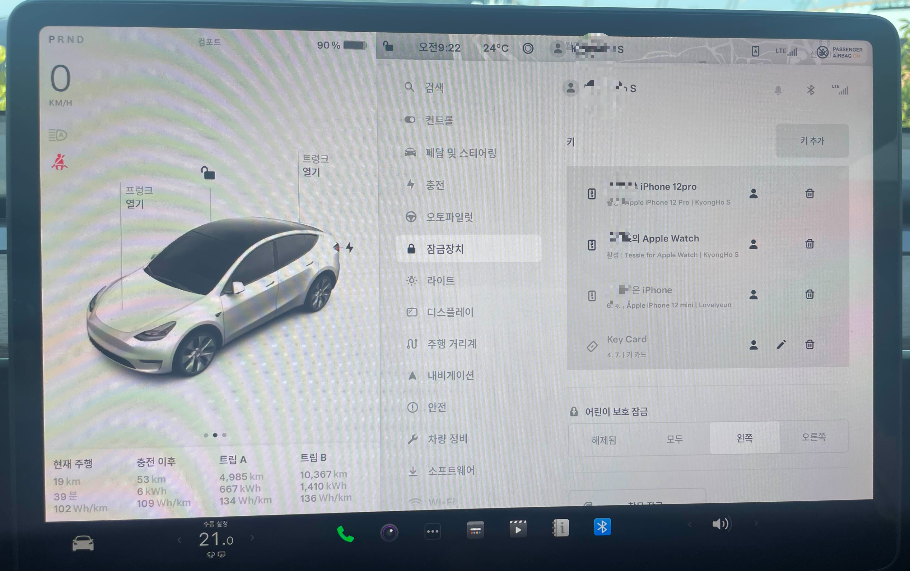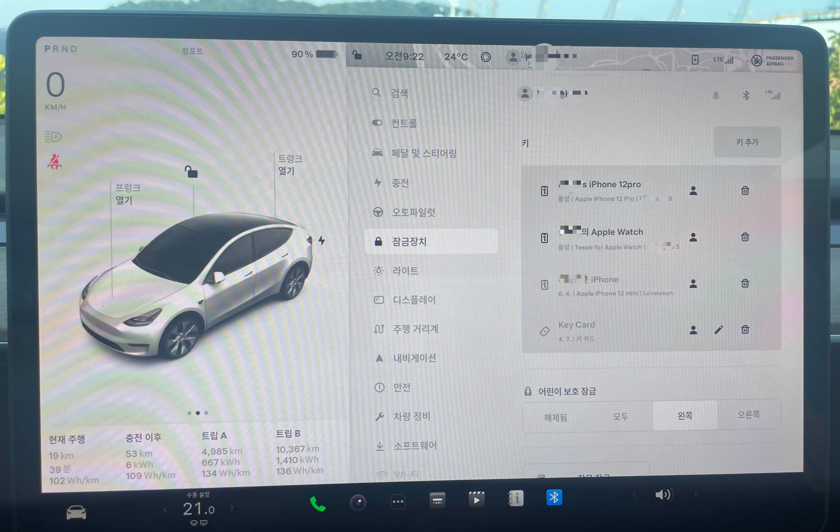 테슬라는 핸드폰으로 블루투스 연결해서 차키로 사용하고 있어서 무척 편리한데요.