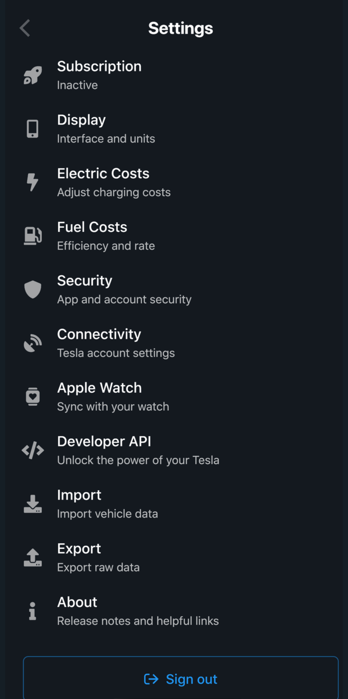<Tessie앱> 에서 Settings > Apple Watch > Sync 를 눌러줍니다.