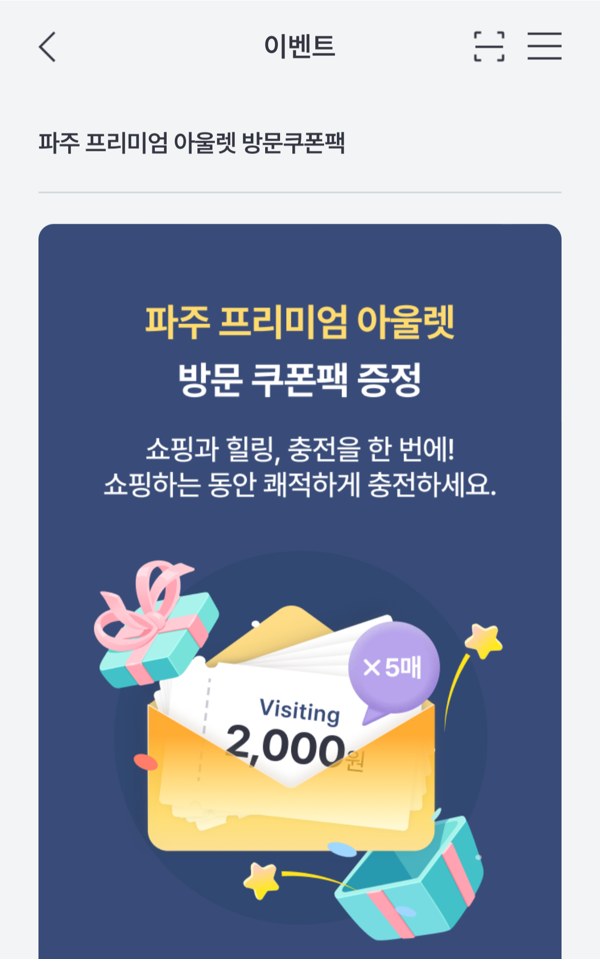 방문 쿠폰팩을 잘 활용하면 2,000원씩 5회 쿠폰(무료) 충전을 할 수 있습니다.