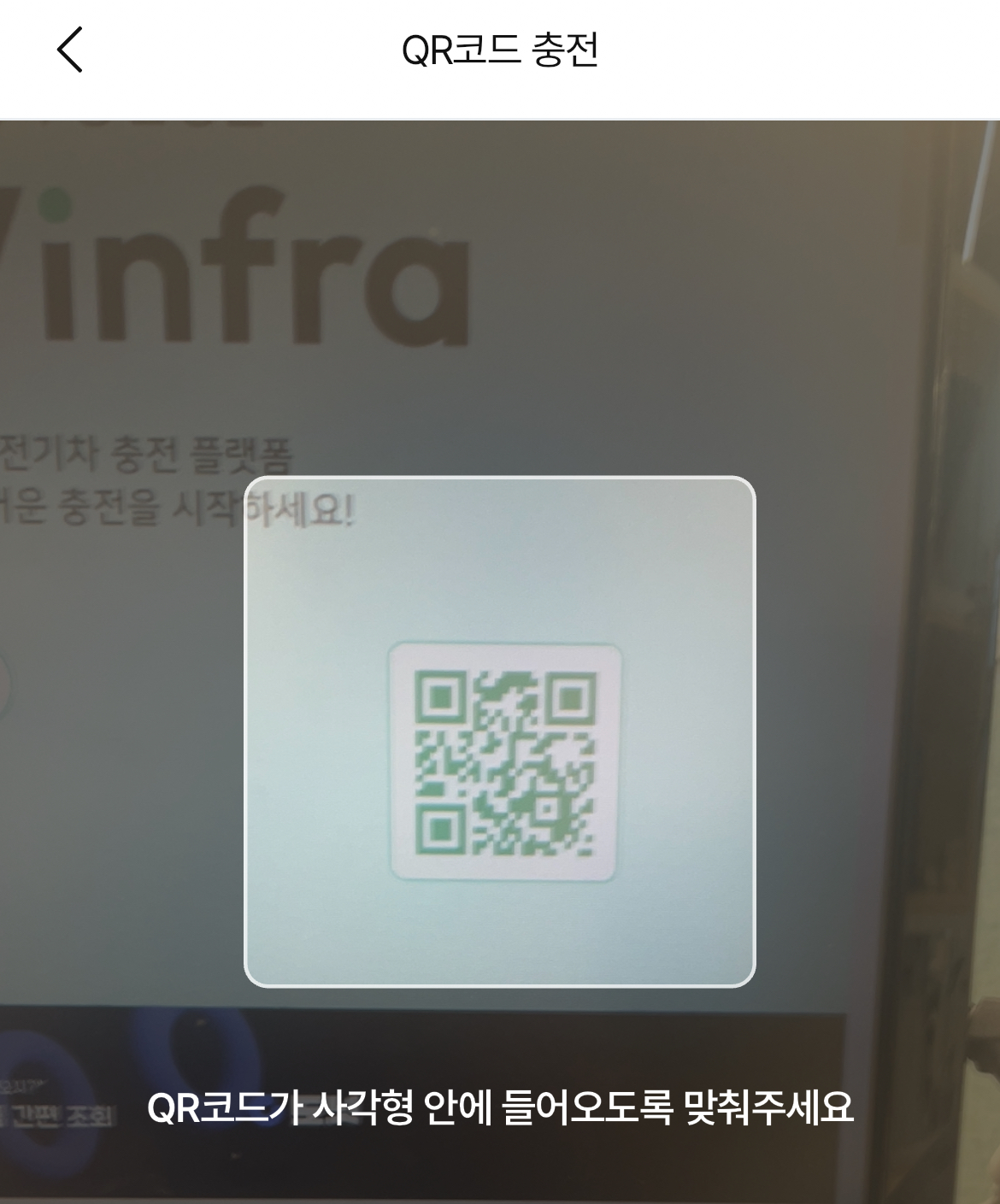 충전기를 찾아가서 '차지비' 어플을 켜고 'QR'을 눌러서 충전기 화면에 있는 QR코드를 인식하면 바로 충전기가 작동합니다.