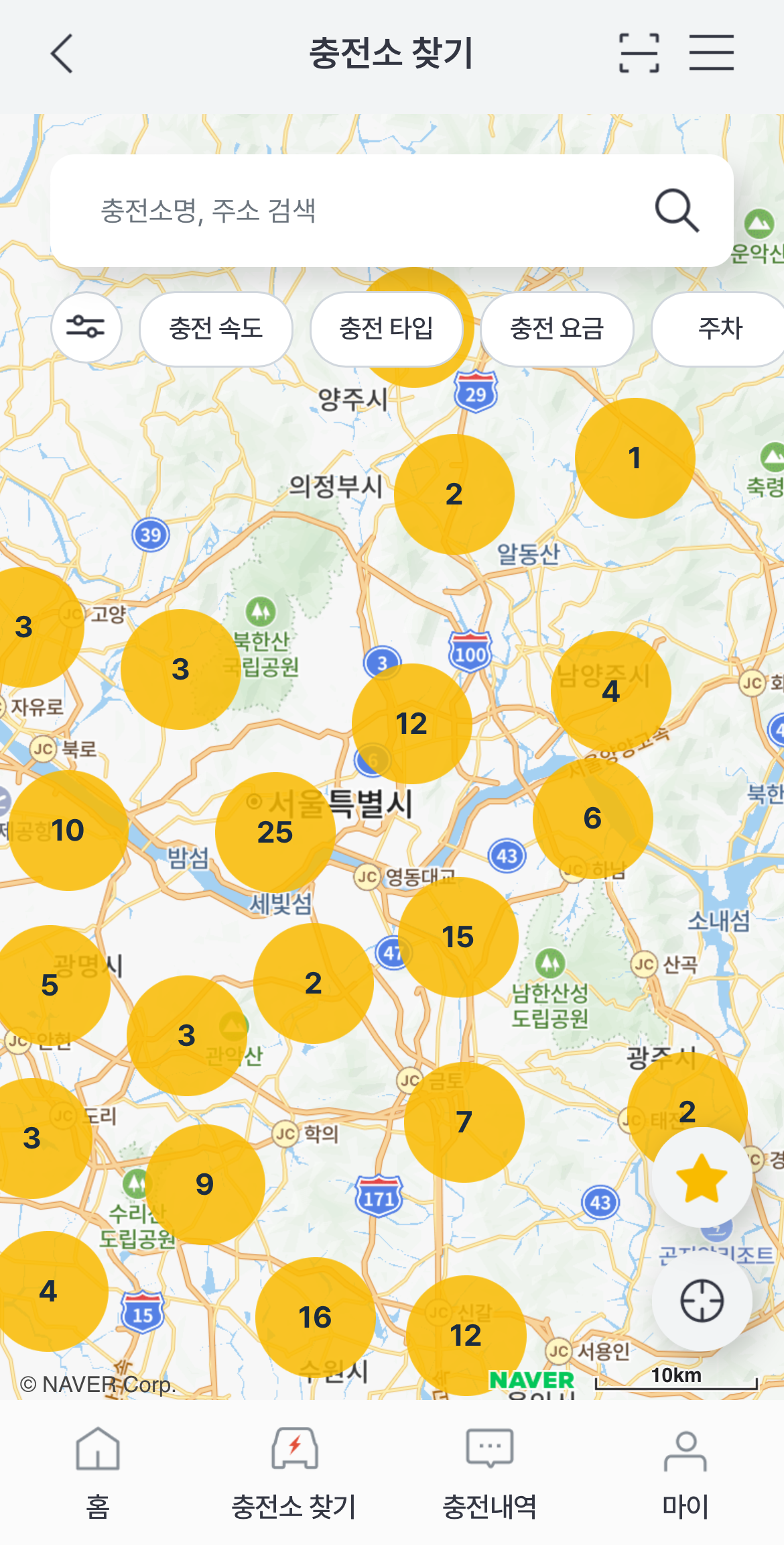 지도에서 충전소를 검색 가능합니다.