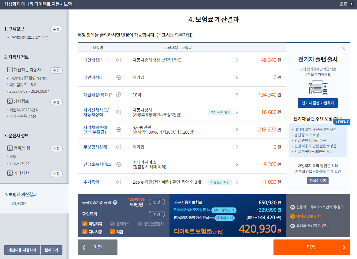 현재까지 계산한 삼성화재 애니카 다이렉트 보험료는 420,930원 인데요. 여기서 더 저렴하게 가입할 수 있습니다.